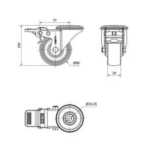Rueda poliamix giratoria Alex diametro 80 mm. 2-0125
