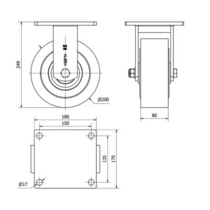 Rueda nylon-poliamida fija Alex diametro 200 mm. 2-0112