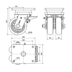 Rueda poliuretano giratoria con freno Alex diametro 150 mm. 2-1601