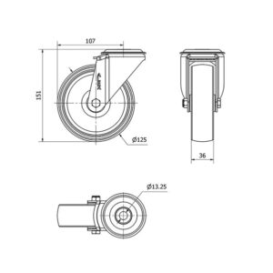 Rueda poliamix giratoria Alex diametro 125 mm. 2-1414