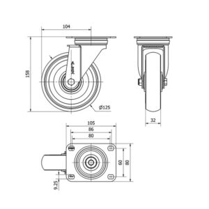 Rueda poliuretano giratoria Alex diametro 125 mm. 2-0570