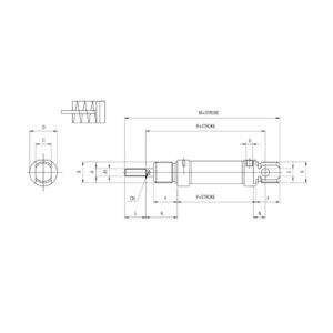 Cilindro neumatico Aignep ISO 6432 simple efecto D-8×25 mm. MB0080025