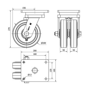 Rueda goma giratoria Alex diametro 200 mm. modelo 2-3182