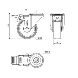 Rueda poliamix giratoria Alex diametro 100 mm. 2-0129