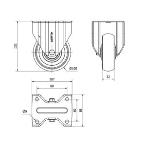 Rueda poliuretano fija Alex diametro 100 mm. 2-0541