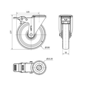 Rueda poliuretano giratoria con freno Alex diametro 150 mm. 2-3532