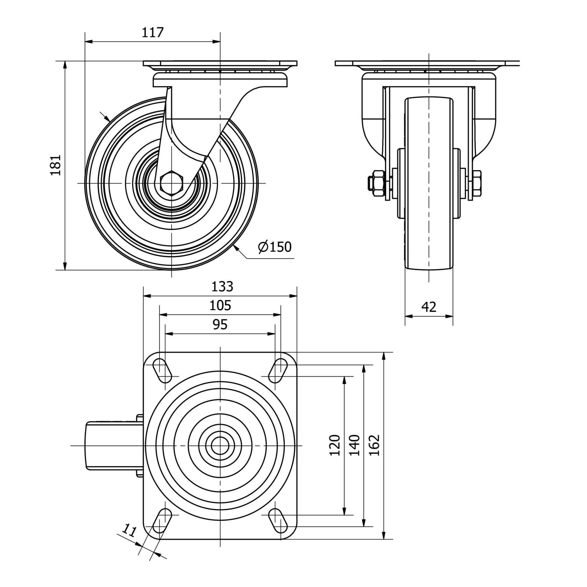 RUEDA PARA TRANSPORTE INDUSTRIAL SERIE 61-PO, RUEDAS ALEX PARA TRANSPORTE INDUSTRIAL, RUEDAS INDUSTRIALES