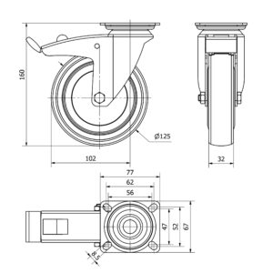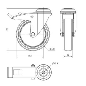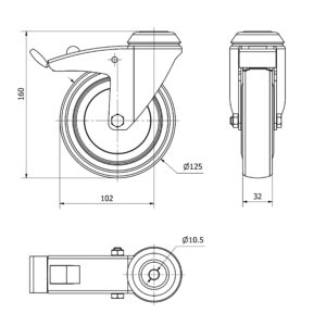 Rueda goma giratoria con freno Alex diametro 125 mm. modelo TW0280