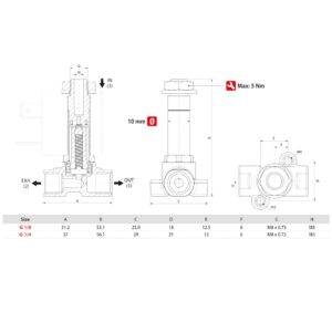Electrovalvula Aignep servoaccionada 2/2 N.O. 1/4″ laton FKM 10 mm. 04F03210V0