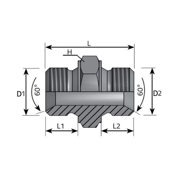 Adaptador hidraulico macho-macho cono 60º acero zincado 5/8″ BSP