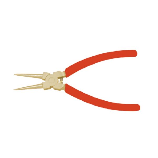 Alicate para arandelas Seeger antichispa, interiores boca recta, concebido para su uso en entornos potencialmente explosivos, al estar fabricado en aleación de aluminio-bronce.