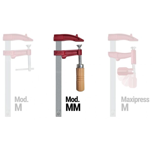 Fuerza maxima = 400 Kg. Llanta de acero calibrada 18×7 mm. Alcance 7 cm. Freno anti-deslizante en cabeza móvil. Mango de madera de haya.