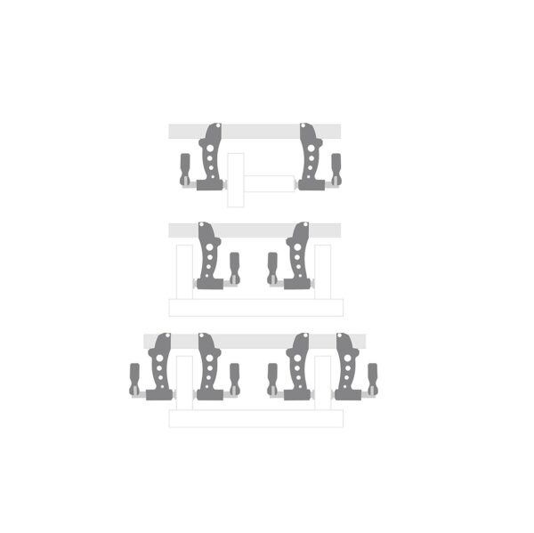 Llanta 35×8 mm. Alcance 12 cm. Fuerza maxima 9.000 N. Rosca oculta protegida. Mango ergonómico, desmontable e intercambiable. Orificio para engrasar el mecanismo.