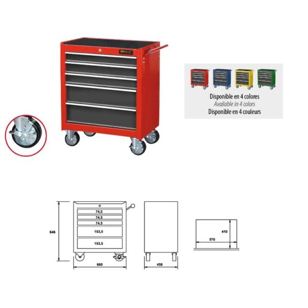 Armario carro de herramientas Ega Master 5 cajones verde codigo 51677 EAN 8412783516777
