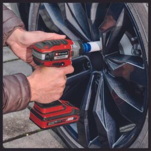 El atornillador de impacto con batería Einhell IMPAXXO 18/230 es el complemento ideal para el cuidado y mantenimiento de la flota doméstica. En lugar de invertir tiempo y energía en el cambio de neumáticos en primavera y otoño, las tuercas se pueden aflojar con este práctica ayudante en un santiamén. El potente atornillador de impacto ofrece una alternativa cómoda a un aflojamiento manual laborioso. Con el motor sin escobillas, el atornillador de impacto proporciona una potencia mayor y una vida útil más larga que la de un motor convencional de escobillas de carbono. Además, el atornillador de impacto con batería forma parte de la familia Power X-Change: la batería con tecnología de iones de litio de alta calidad y un cargador puede utilizarse en todos los modelos Power X-Change. La ventaja es obvia: los cables molestos, el riesgo de tropezar y las deformaciones no deseadas debidas al espacio limitado para el movimiento ahora son cosa del pasado gracias a la nueva, potente y duradera generación de herramientas inalámbricas de Einhell. Esto permite un trabajo rápido y seguro en todas las ruedas. El alto par del potente atornillador de impacto con batería aporta la potencia suficiente para aflojar las tuercas atascadas, encajadas u oxidadas en un santiamén. En cualquier potencia, el IMPAXXO 18/230 es un peso ligero para su calibre y así cómodo en el manejo. El atornillador de impacto tiene una robusta recepción de cuadrado exterior de 1/2″, y en el envío se incluye un adaptador de brocas para atornillar. La luz Led integrada para iluminar el área de trabajo también permite un cambio rápido de neumático si se da el caso: al anochecer, en la oscuridad o en garajes sin la iluminación adecuada. El suministro se realiza sin batería ni cargador, que se pueden adquirir por separado.
