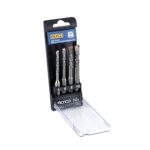 Está fabricada en acero aleado y templado y cuenta con una punta de carburo de tungsteno.