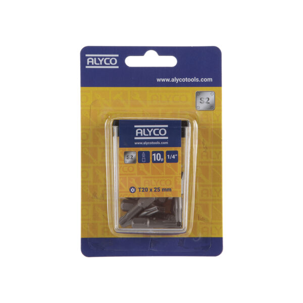 Caja 10 puntas atornilladoras torx inviolable 1/4″ T25 25 mm. Alyco codigo 193593