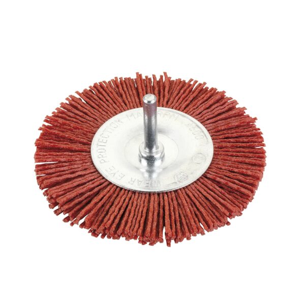 Sus filamentos flexibles están fabricados en nylon con grano abrasivo, perfectos para trabajar sobre superficies como madera o metal.