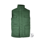 Chaleco. Exterior: Tejido sarga poliéster/ algodón, 200 gramos. Interior: 100% poliéster acolchado. Chaleco laboral multibolsillo de cremallera central con tapeta y cierre velcro. Cortavientos en bocamanga. Trasero con faldón. Con seis bolsillos exteriores y un bolsillo interior.