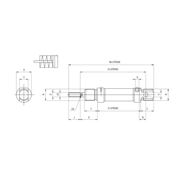 Cilindro neumatico Aignep ISO 6432 simple efecto D-16×25 mm. MB0160025