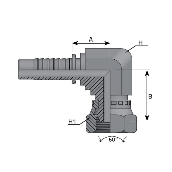 Codo 90º prensar compacto acero cono 60º 1/2″ BSP tubo 3/8″