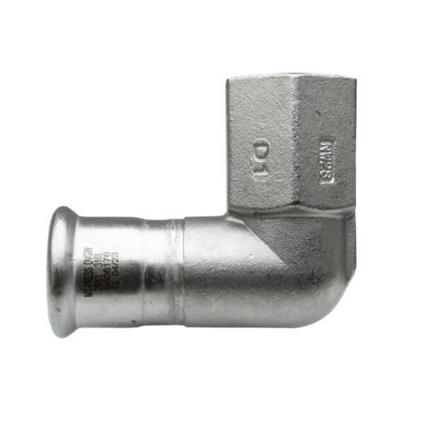 Codo 90º rosca hembra prensar hembra acero inoxidable A-316L 3/4″ D-18 mm.
