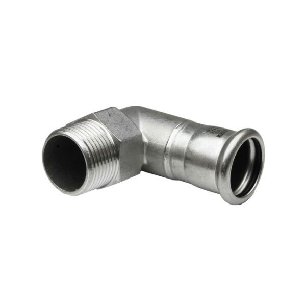 Codo 90º rosca macho prensar hembra acero inoxidable A-316L 1/2″ D-18 mm.