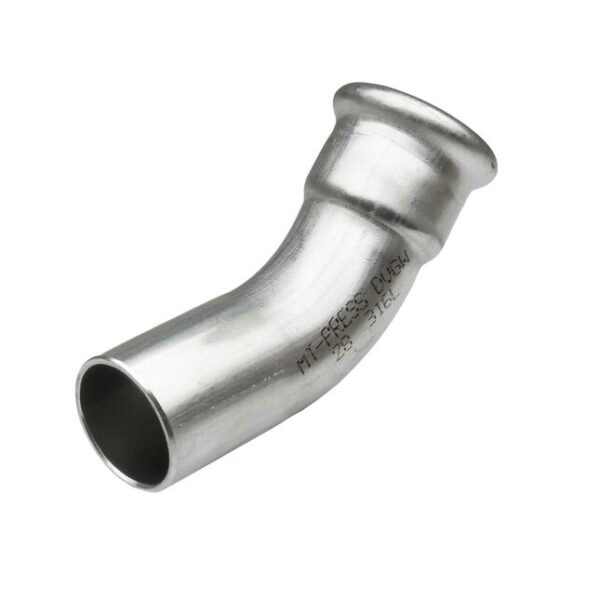 Curva 45º hembra-macho prensar acero inoxidable A-316L D-76 mm.