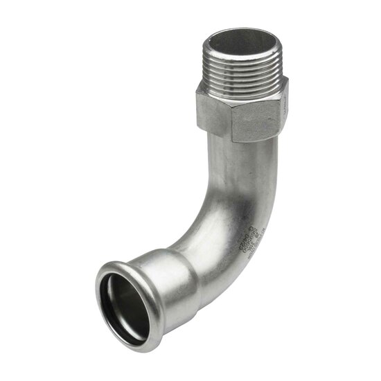 Curva 90° con conexión rosca macho prensar hembra para tubería de acero inoxidable, fabricada en acero inoxidable A-316L según la normativa EN-14404, con juntas tóricas en EPDM/FKM y con rosca de acuerdo a DIN-2999. La curva soporta una presión máxima de 16 bar a 90°C. y de 6 bar a 180°C. Soporta un rango de temperatura de -20 a 110°C. con junta en EPDM y de -20 a 180°C con junta KFM. Cumple con los requisitos según UNE-EN-10088, así como DVGW GW534-2004 y DVGW GW541:2004-10. Está indicada para su uso en agua sanitaria, calefacción, contra incendios y aire comprimido (libre de aceite) si dispone de junta tórica en EPDM y para aceites, hidrocarburos (excepto gasoil), instalaciones solares y aire comprimido, si dispone de junta en FKM. Los accesorios inoxidables para prensar son aptos para tubos que cumplen con las especificaciones DVGW GW 541 y UNE-EN-10088. Los productos Corix son piezas de acero inoxidable de gran calidad, específicamente pensados para el ámbito industrial. Toda la gama está fabricada bajo estrictos parámetros de calidad cumpliendo con las más altas certificaciones en conducción de fluidos.