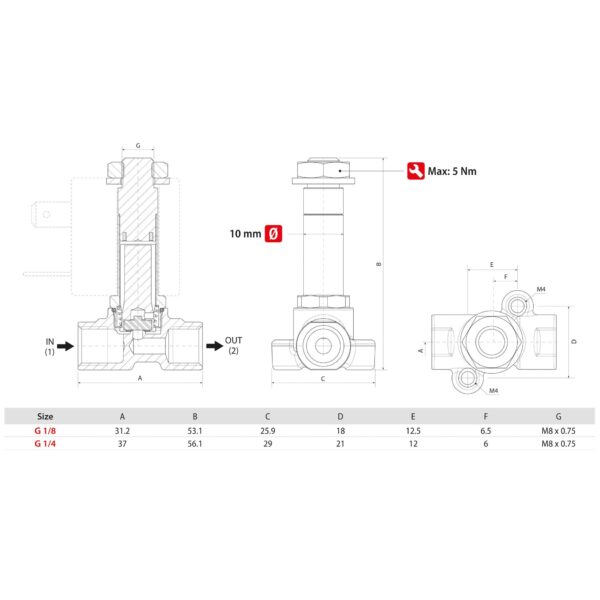 Electrovalvula accionamiento directo Aignep 2/2 N.C. 1/4″ laton EPDM 1,5 mm. 01F03115E0