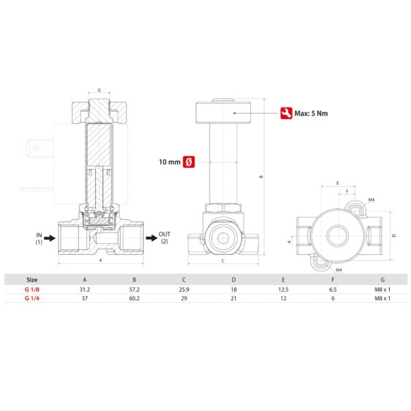 Electrovalvula accionamiento directo Aignep 2/2 N.O. 1/4″ laton FKM 1,5 mm. 01F03215V0