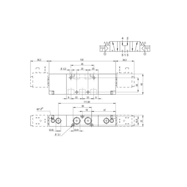 Electrovalvula asistida monoestable Aignep 5/3 P.C. 1/4″ retorno muelle 01VA07PC03