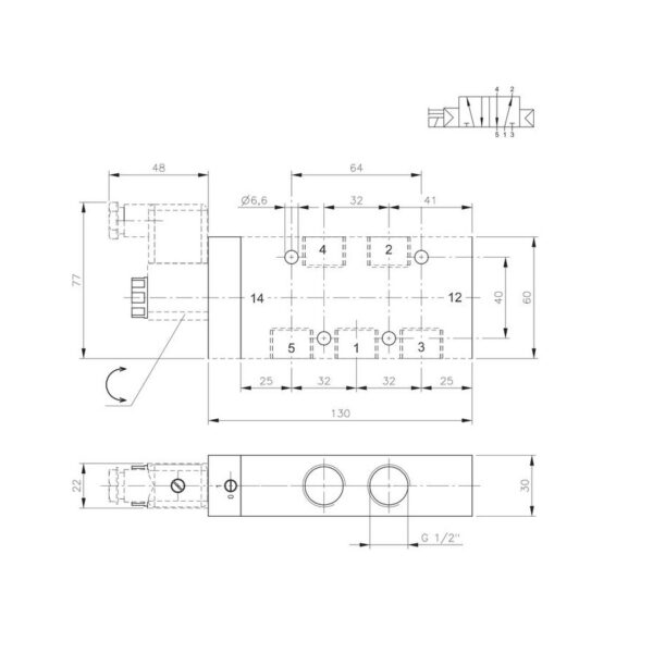 Electrovalvula inox. Aignep monoestable 5/2 1/2″ retorno neumatico X1VS450005