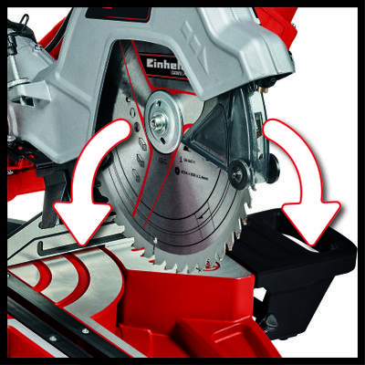 Con la sierra ingletadora de corte por tracción Einhell TE-SM 254 Dual, el aficionado al bricolaje está bien equipado para las tareas de aserrado y corte transversal que surgen en el hogar, el taller y el garaje. Con unos potentes 1.800 watios, la hoja de sierra (Ø254 exterior x ø30 interior) se abre camino a través del material. La sierra estable tiene una función de tracción suave para piezas de trabajo anchas. Se utilizaron cojinetes de muy alta calidad para la función de tracción y también para el mecanismo de unión del cabezal de la sierra para facilitar el trabajo al máximo. El ajuste preciso del ángulo en la mesa giratoria facilita cortes en bisel exitosos. Para los ángulos más comunes para el trabajo de bricolaje, ya se proporcionan posiciones de bloqueo en la plataforma giratoria para ajustar los ángulos de forma rápida y segura, lo que también facilita el ajuste rápido e inteligente. El usuario encuentra escalas fáciles de leer para ángulos y anchos. El cabezal de la sierra también se puede inclinar hacia la izquierda para cortes en inglete, y al usuario también le gustará el ajuste rápido inteligente aquí. El ancho de corte es de hasta 305 milímetros en una posición de 90° y de hasta 210 milímetros en 45°, siendo la altura máxima de corte de hasta 85 mm. El láser de línea de corte integrado claramente visible facilita mucho el trabajo. Se proporcionan soportes para piezas de trabajo más largas a la izquierda y a la derecha y hay un práctico dispositivo de sujeción para que las piezas de trabajo se puedan fijar. La hoja de sierra de carburo de alta calidad ofrece un corte perfecto. El bloqueo del husillo y el tornillo de la hoja de sierra de fácil acceso facilitan el cambio de la hoja de sierra. Un embudo de polvo está ubicado detrás de la hoja de la sierra para mejorar la eliminación del aserrín. La conexión de extracción existente tiene un diámetro de 36 milímetros, alternativamente se puede usar la bolsa de recolección de polvo adjunta.