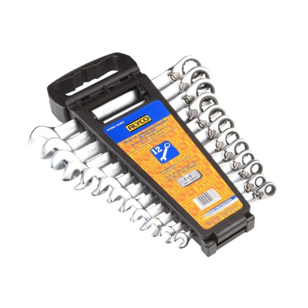 Juego llaves combinadas carraca 12 piezas en soporte 8-19 mm. Alyco codigo 191877
