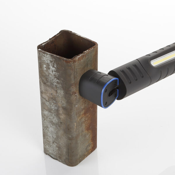 Posibilidad de posicionamiento de la linterna en cualquier superficie metálica (capó) y redireccionamiento hacia el lugar que se quiere iluminar (hasta 15 metros de distancia).