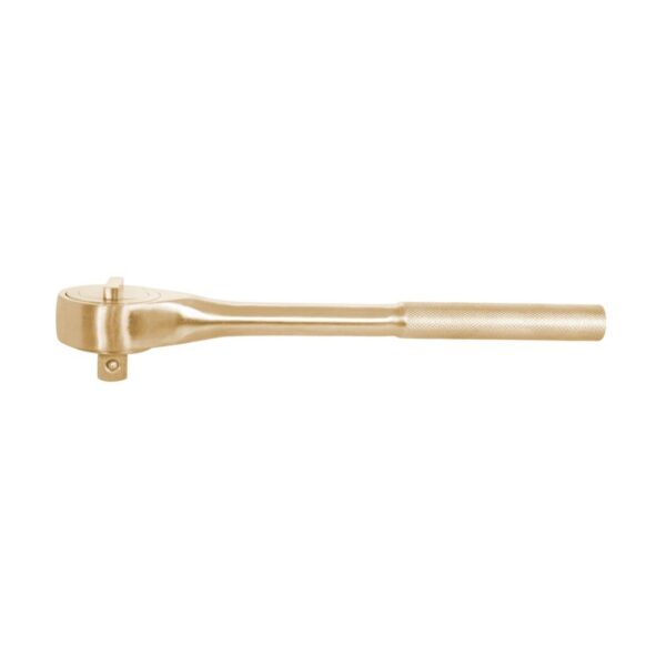 Llave de carraca antichispa, concebida para su uso en entornos potencialmente explosivos, al estar fabricada en aleación de cobre-berilio.