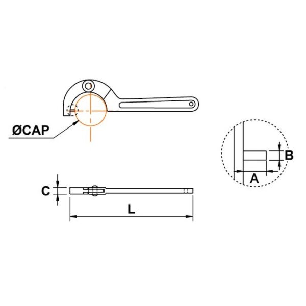 Llave de gancho con pin articulada Ega Master 50-80 mm. codigo 58122