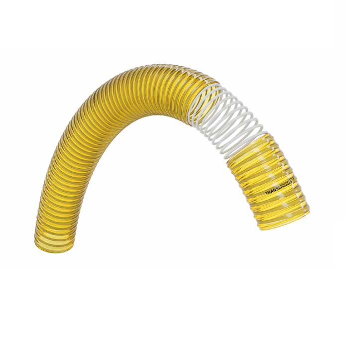Manguera de PVC flexible con refuerzo interior de espiral de PVC rígido antichoque que le da gran consistencia. Para bombeo por aspiración e impulsion de liquidos alimentarios. Para transporte de fluidos en instalaciones industriales, aspiración e impulsión en riegos y maquinaria agrícola. Para trasiego de líquidos alimentarios que requieran simulantes alimentarios A, B y C en condiciones OM2 según Reg. UE 10/2011. De uso alimentario según reglamentos europeos CE 1935/2004 y UE 10/2011 (consultar declaración de conformidad). La pared del tubo es lisa en su interior y corrugada en el exterior. Buena resistencia química asociada a la tabla de resistencias del PVC. La temperatura recomendada de empleo es entre 10°C. y 60°C.