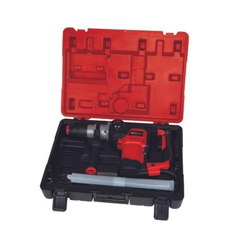 El martillo demoledor Einhell TE-RH 40 3F es un potente ayudante de 1050 W. con tres funciones base para trabajos de saneamiento y renovación: perforación por percusión y cincelado con y sin fijación. El martillo perforador convierte hasta 10 J. en la herramienta y con el mecanismo percutor neumático crea un muy buen empuje hacia delante hasta 40 mm de potencia de perforación en hormigón. El interruptor de posición es práctico para todas las funciones, mientras que las grandes superficies de agarre suave ofrecen un firme sostén y por tanto una manipulación segura. El martillo perforador está equipado con un bloqueo de marcha permanente para un trabajo agradable y sencillo y un portaherramientas SDS-max con función semiautomática. Con cualquier potencia, la unidad electrónica de velocidad de giro da lugar a un trabajo adaptado al material y a la aplicación. El envío se realiza incluyendo cincel plano y en punta en el maletín de transporte y conservación E-Box M55.