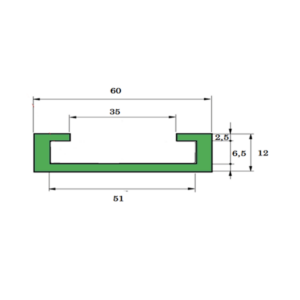 Perfil guia PE-1000 verde para pletina tipo «C» 6×50