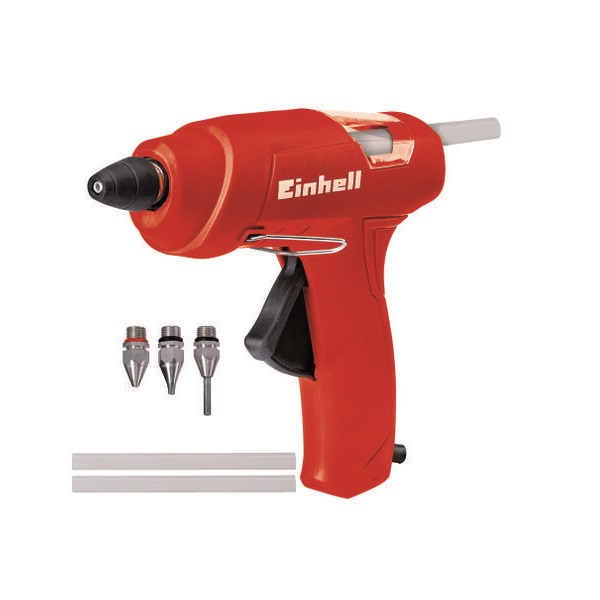 La pistola de pegamento termofusible Einhell TC-GG 30 es el complemento ideal para el taller de bricolaje, la sala de manualidades o el hogar. La TC-GG 30 apoya a los aficionados creativos en sus proyectos, pero al mismo tiempo puede resolver de manera rápida y efectiva pequeños contratiempos: los adhesivos de fusión en caliente son adecuados para casi todos los materiales y se pueden usar universalmente en madera y metal, telas y textiles, azulejos y cerámica, así como en plástico y materiales sintéticos. La pistola de pegamento termofusible tiene una alimentación mecánica para aplicaciones específicas y una guía de barra de pegamento de fusión en caliente con ventana de visualización, de modo que se realice con éxito el pegado exacto para reparaciones casi invisibles o trabajos de filigrana. El mango ergonómico garantiza un trabajo cómodo y sin fatiga, incluso en proyectos largos. La pistola de pegamento termofusible puede ponerse de lado sin problemas gracias a un soporte de fijación que proporciona una posición segura. Se suministra con una boquilla estándar, una boquilla plana y una boquilla de extensión, así como tres barras de pegamento termofusible.