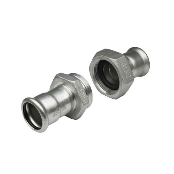 Racor de 3 piezas con conexiones prensar hembra para tubería de acero inoxidable, fabricada en acero inoxidable A-316L según la normativa EN-14404, con juntas tóricas en EPDM/FKM y con rosca de acuerdo a DIN-2999. La curva soporta una presión máxima de 16 bar a 90°C. y de 6 bar a 180°C. Soporta un rango de temperatura de -20 a 110°C. con junta en EPDM y de -20 a 180°C con junta KFM. Cumple con los requisitos según UNE-EN-10088, así como DVGW GW534-2004 y DVGW GW541:2004-10. Está indicada para su uso en agua sanitaria, calefacción, contra incendios y aire comprimido (libre de aceite) si dispone de junta tórica en EPDM y para aceites, hidrocarburos (excepto gasoil), instalaciones solares y aire comprimido, si dispone de junta en FKM. Los accesorios inoxidables para prensar son aptos para tubos que cumplen con las especificaciones DVGW GW 541 y UNE-EN-10088. Los productos Corix son piezas de acero inoxidable de gran calidad, específicamente pensados para el ámbito industrial. Toda la gama está fabricada bajo estrictos parámetros de calidad cumpliendo con las más altas certificaciones en conducción de fluidos.
