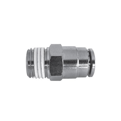 Cuerpo y pulsador en latón niquelado. Junta en NBR. Presión máxima: 10 bar. Rango temperatura: 0ºC. a + 60ºC. Roscas BSP cilíndricas con O-Ring de NBR. Roscas cónicas teflonadas. 01=1/8?. 02=1/4?. 03=3/8?. 04=1/2?.