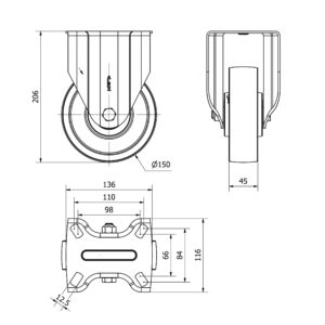 Rueda acero fija Alex diametro 125 mm. modelo 2-4979