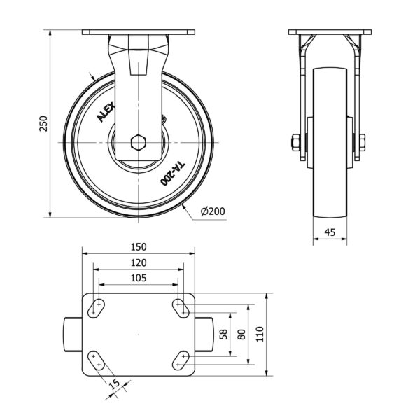 Rueda acero fija Alex diametro 200 mm. modelo 4-0381