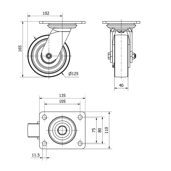 Rueda acero giratoria Alex diametro 125 mm. modelo 4-0794 EAN 8422202407944