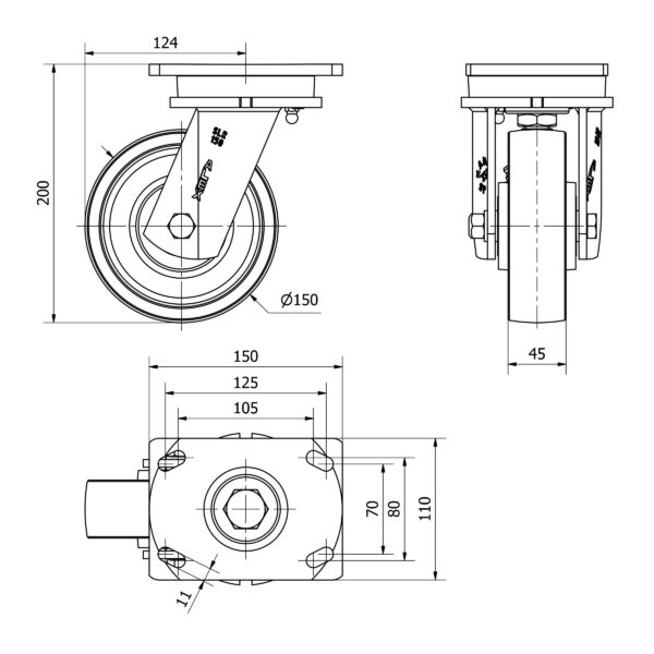 Rueda acero giratoria Alex diametro 150 mm. modelo 2-3682 EAN 8422202236827