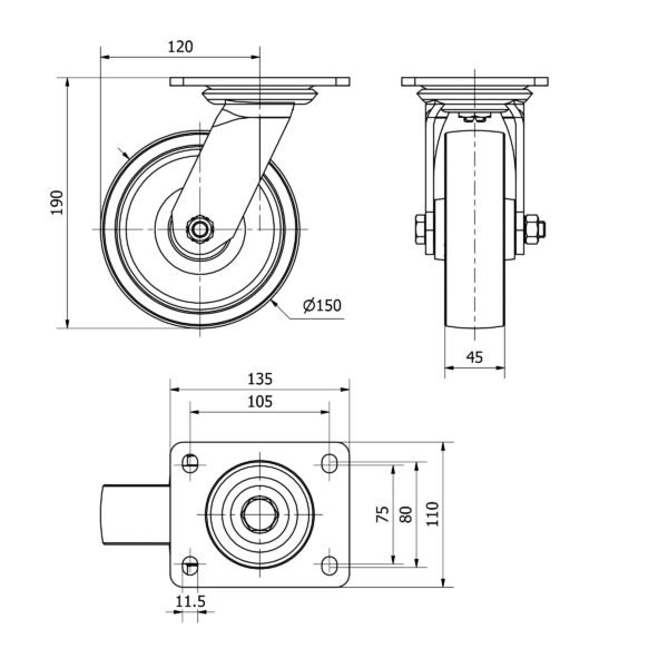 Rueda acero giratoria Alex diametro 150 mm. modelo 4-0855 EAN 8422202408552