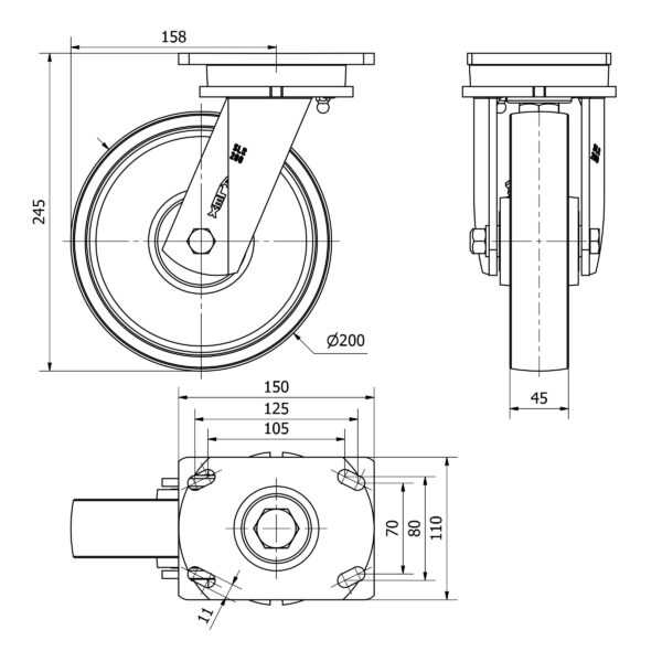 Rueda acero giratoria Alex diametro 200 mm. modelo 2-3684 EAN 8422202236841